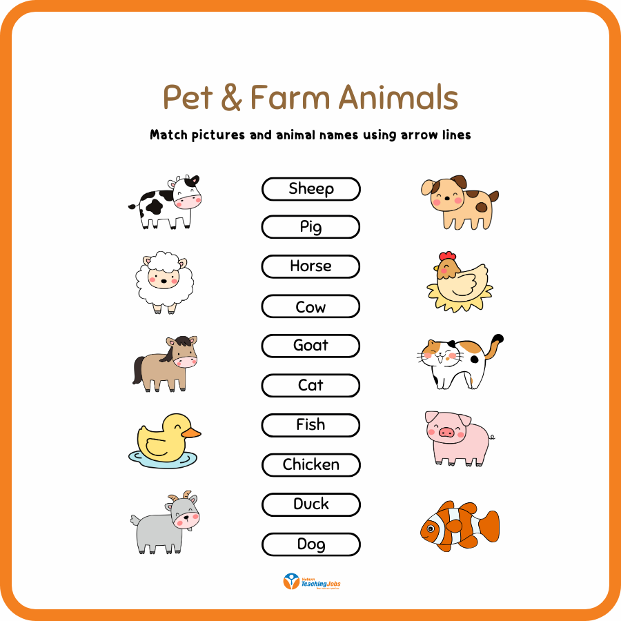 • Pet & Farm Animals: Match animal names with the correct pictures.