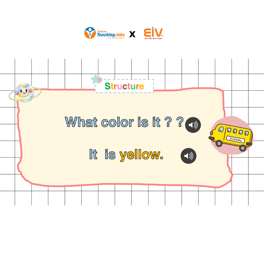 Objective: Teach students to recognize and say basic colors in English, and practice the structure “What color is it? – It is …”