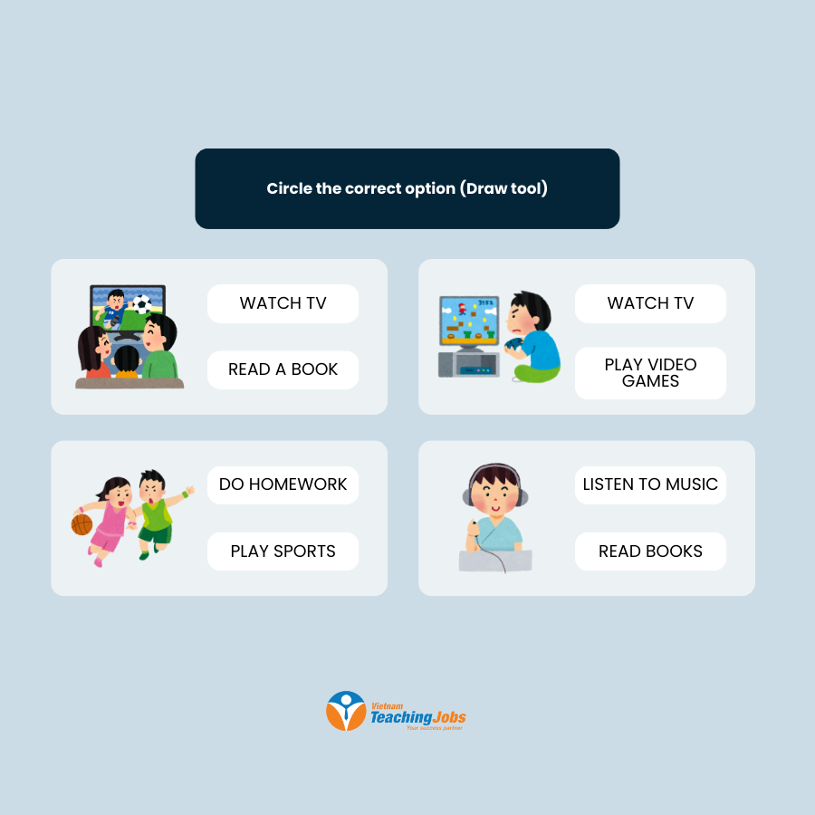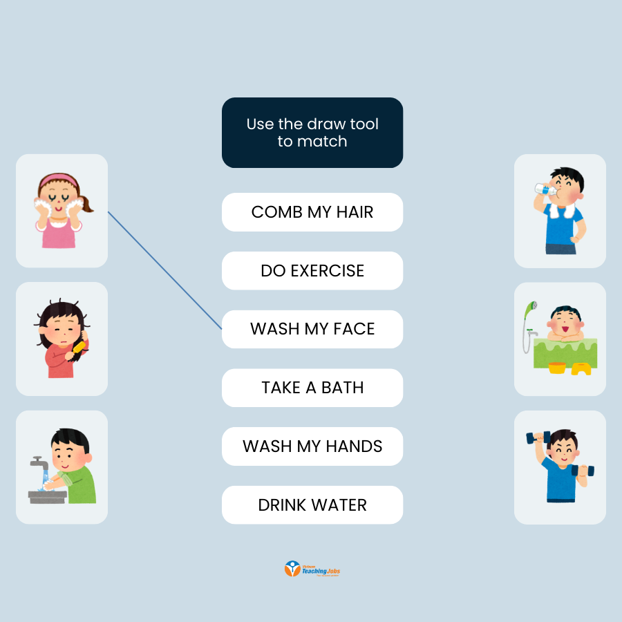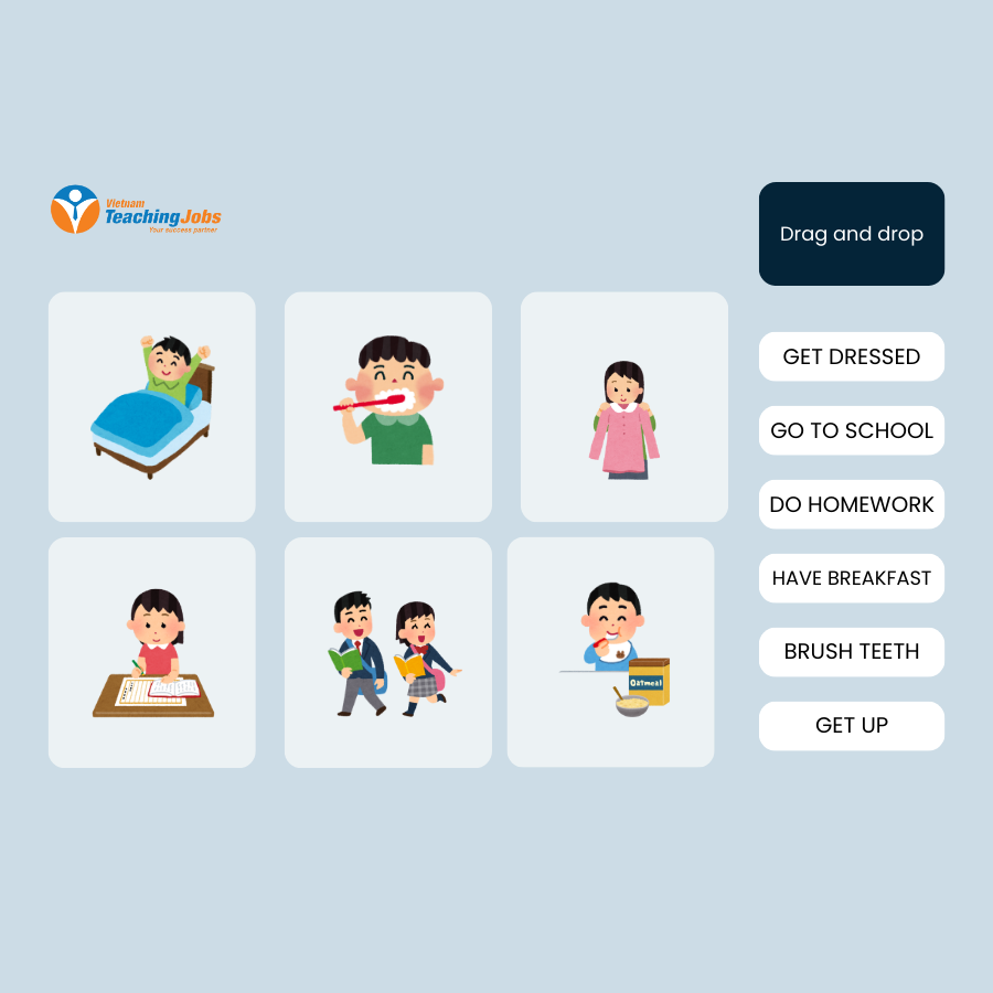 - Vocabulary Recognition: Students look at pictures and match, drag-and-drop, or circle the correct daily routine words.