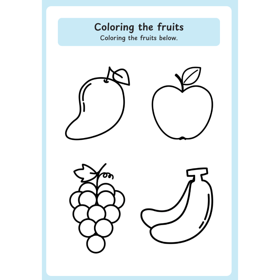 - Coloring Pages: Black-and-white fruit outlines to color.