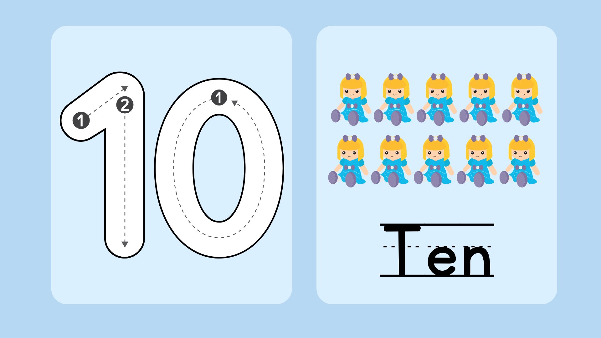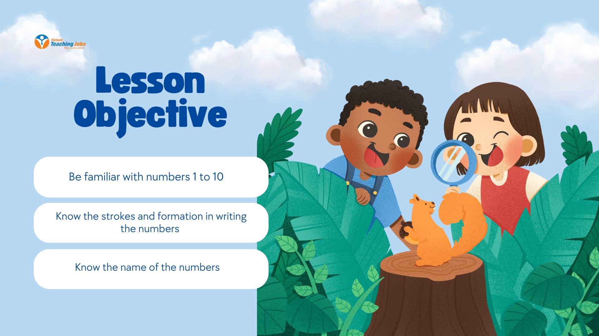 Objective: Help young learners recognize and practice writing numbers from 1 to 10 in English.